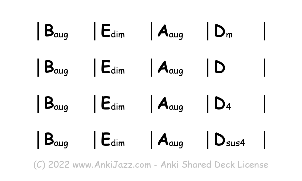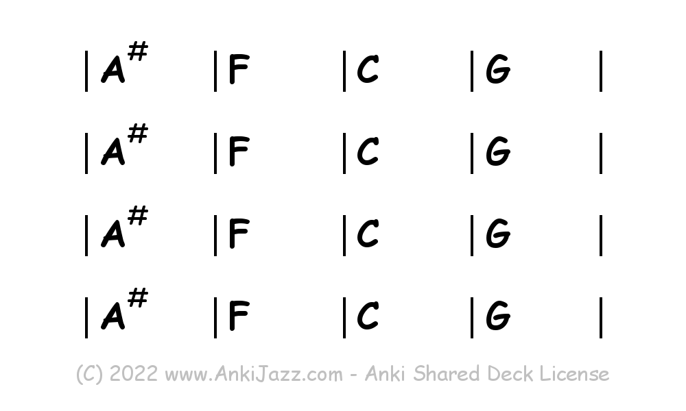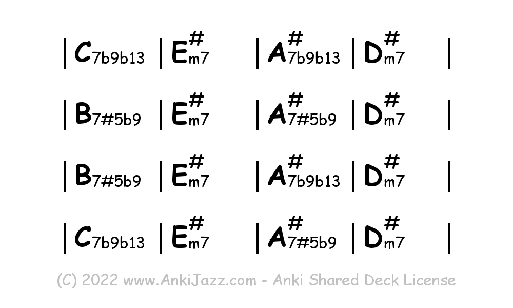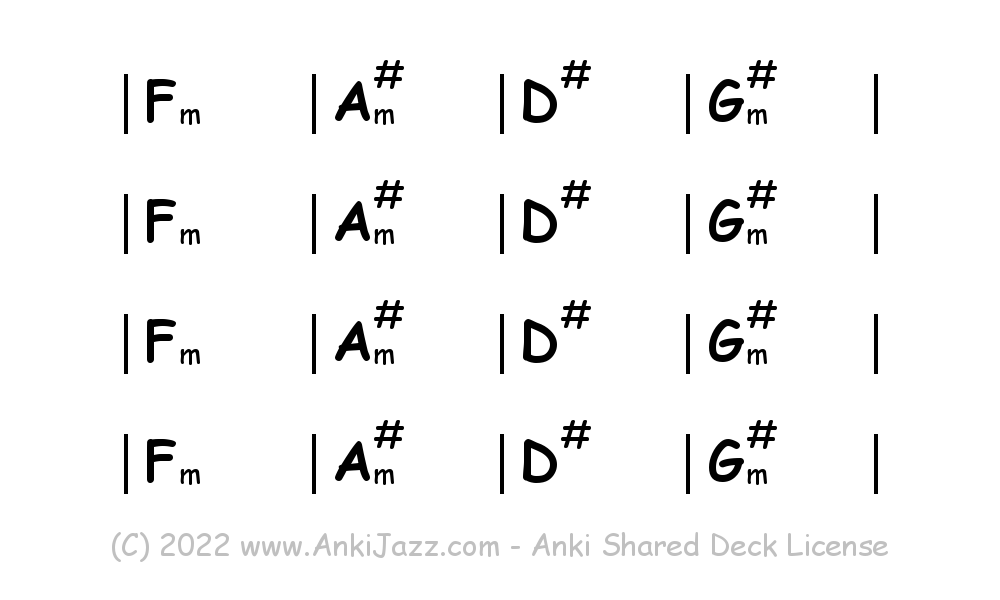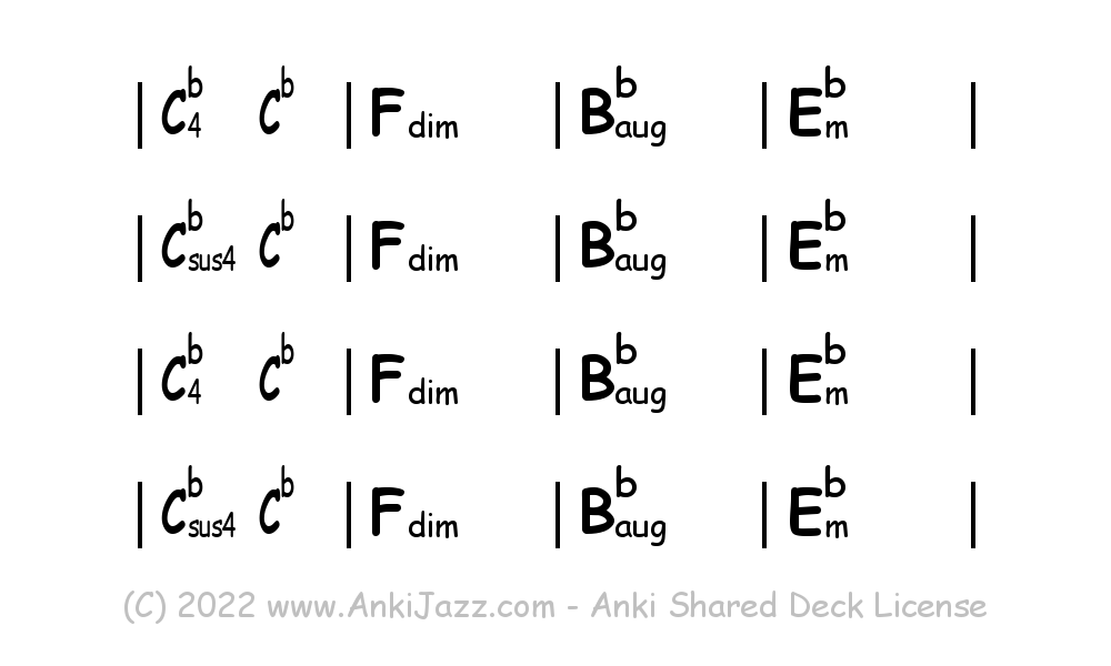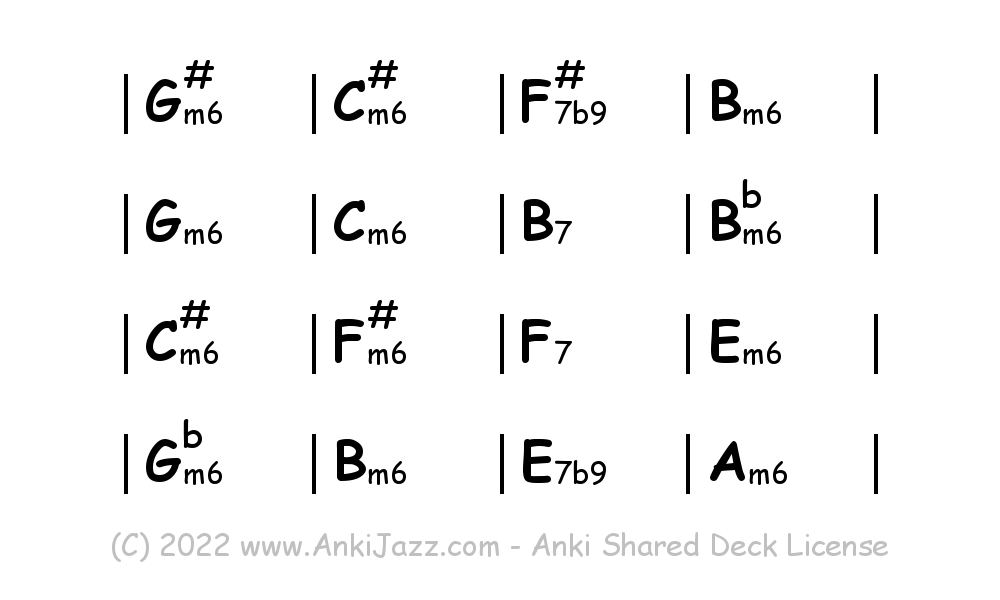 This deck contains chords and chord progressions commonly used in Jazz and other music styles. See full documentation on AnkiJazz.com.