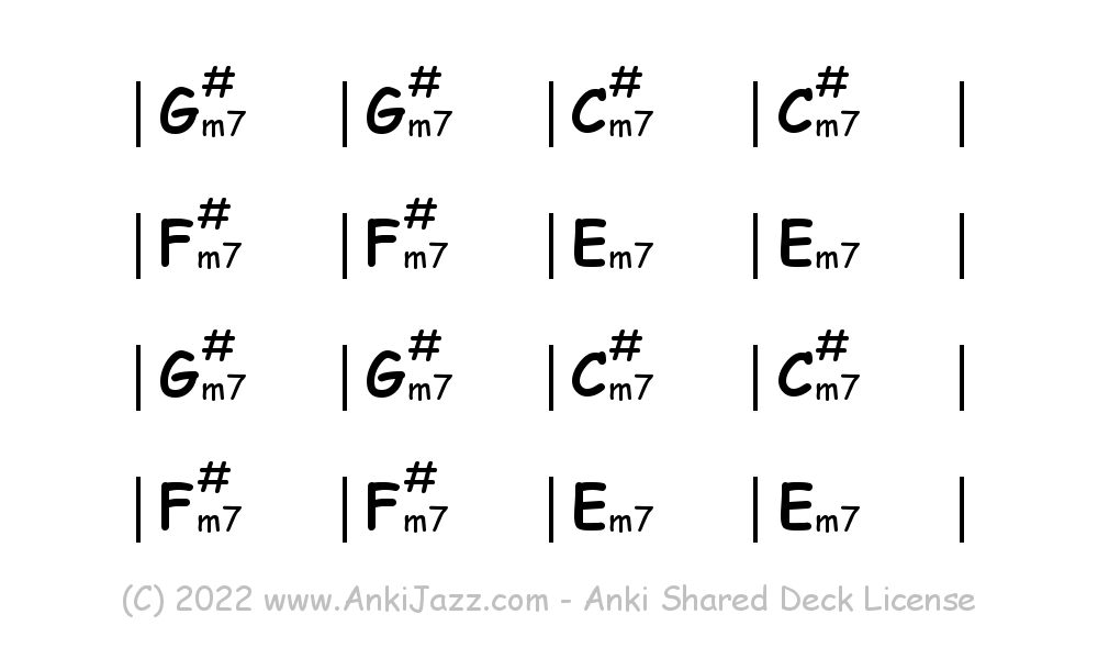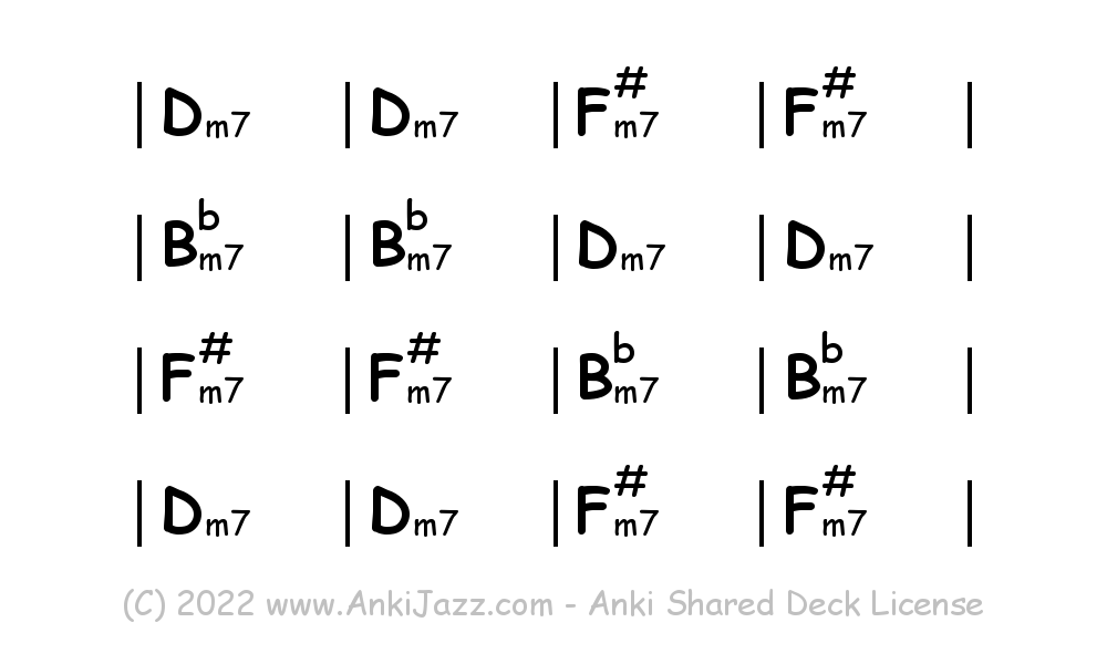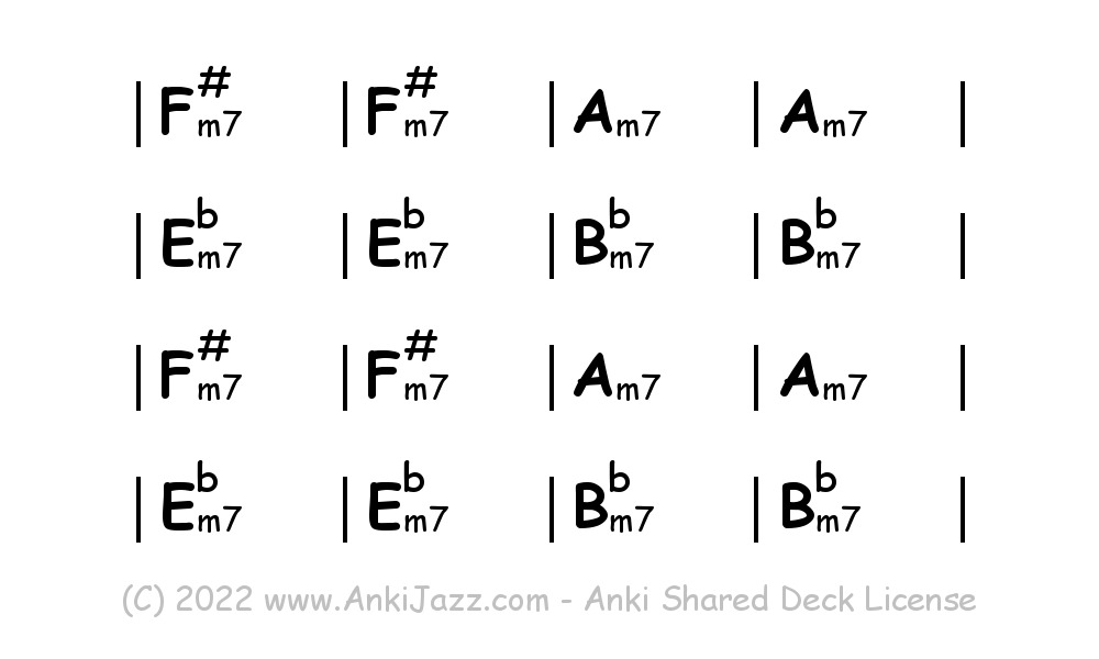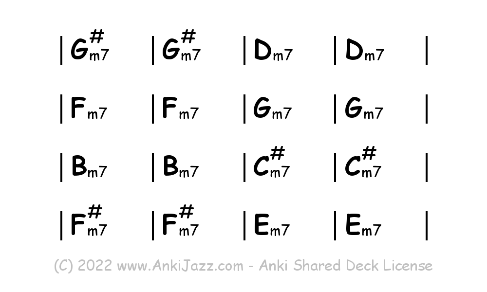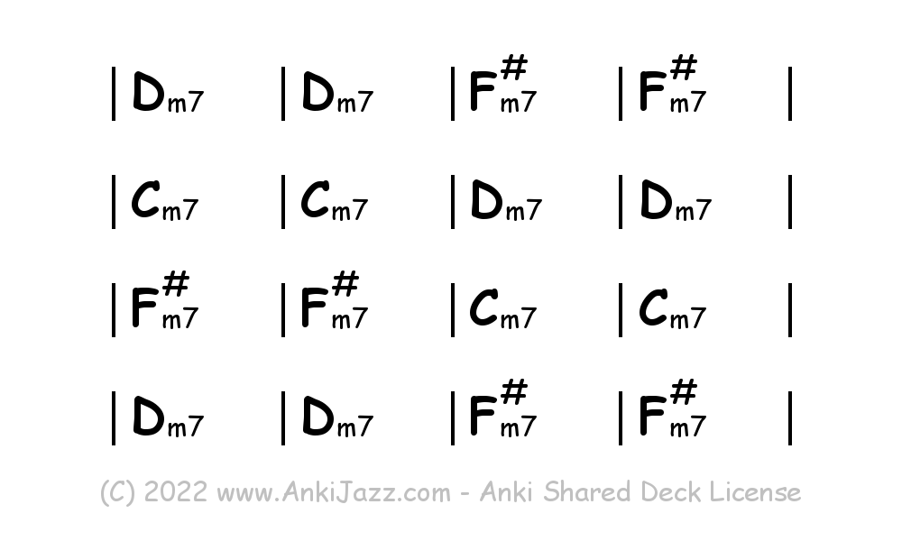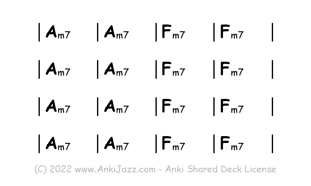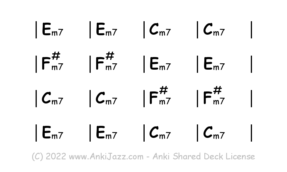 This deck contains chords and chord progressions commonly used in Jazz and other music styles. See full documentation on AnkiJazz.com.