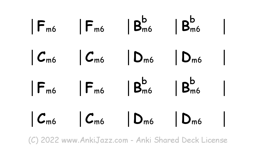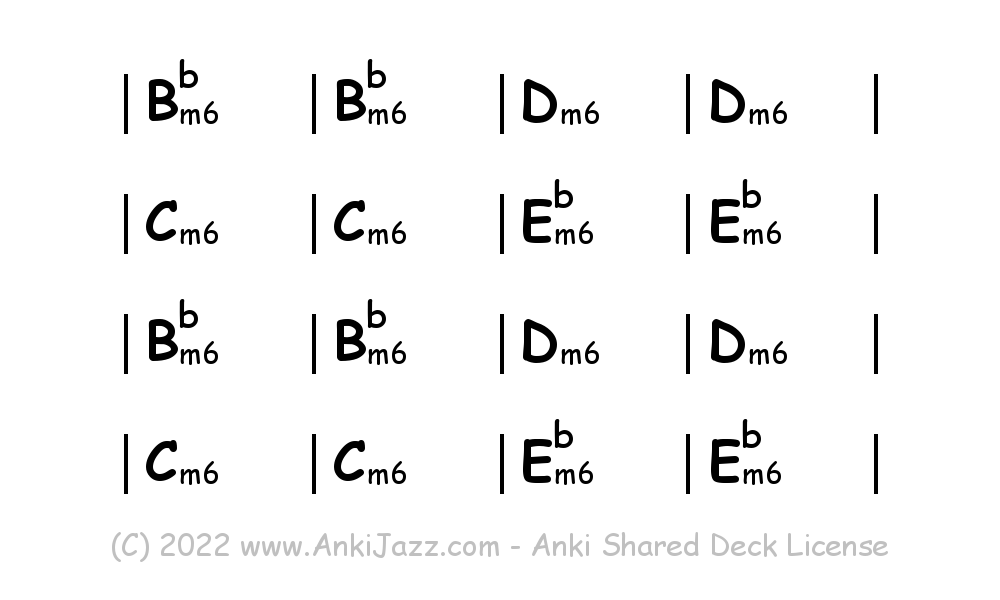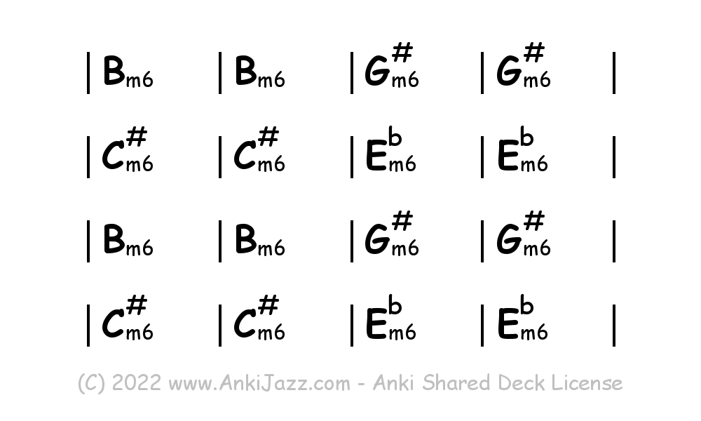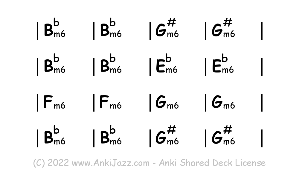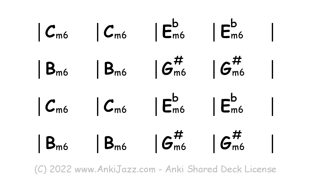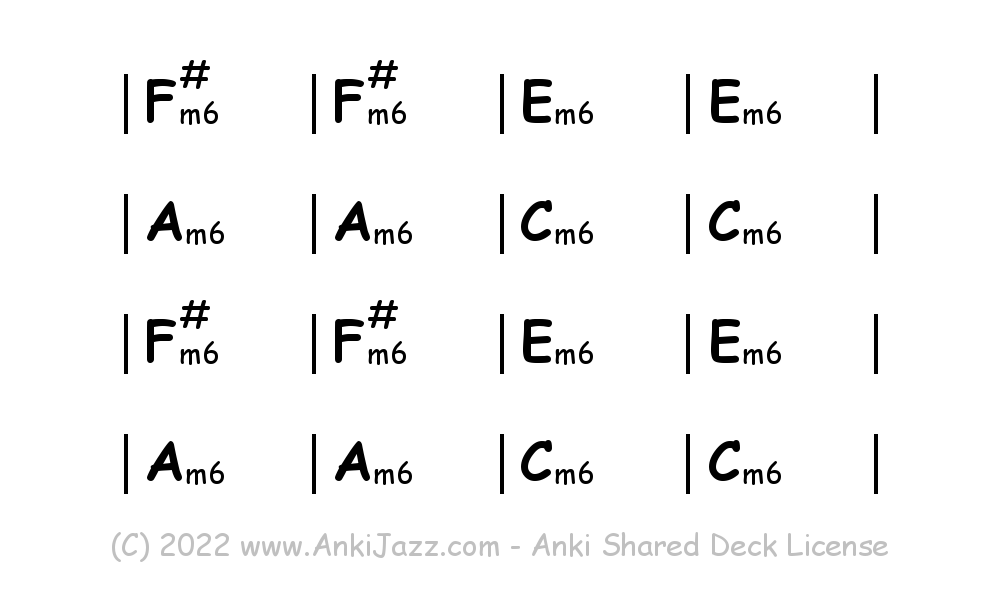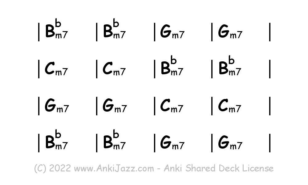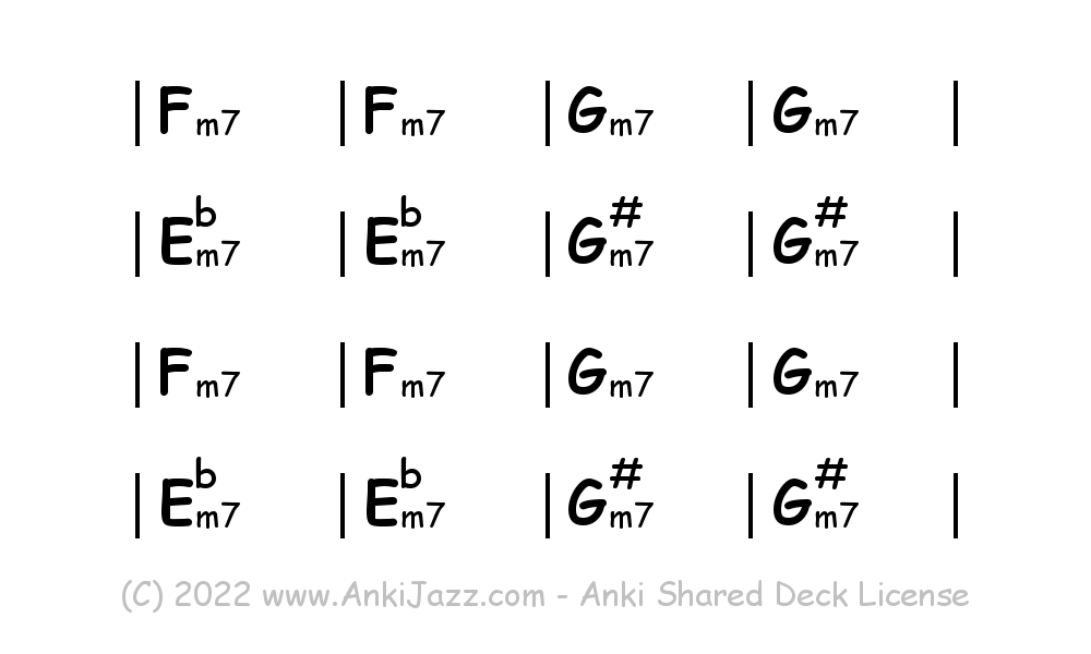 This deck contains chords and chord progressions commonly used in Jazz and other music styles. See full documentation on AnkiJazz.com.