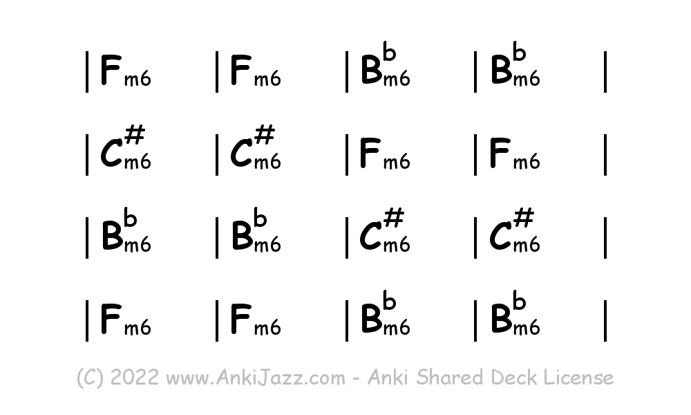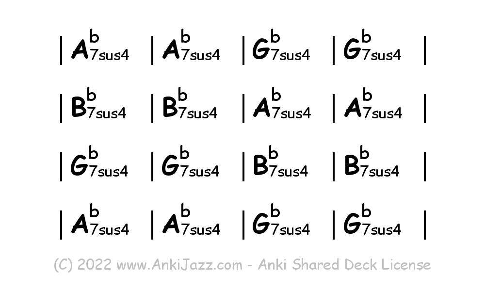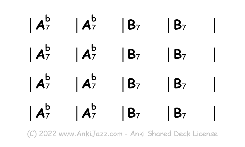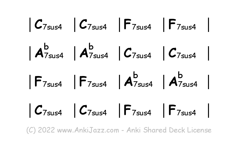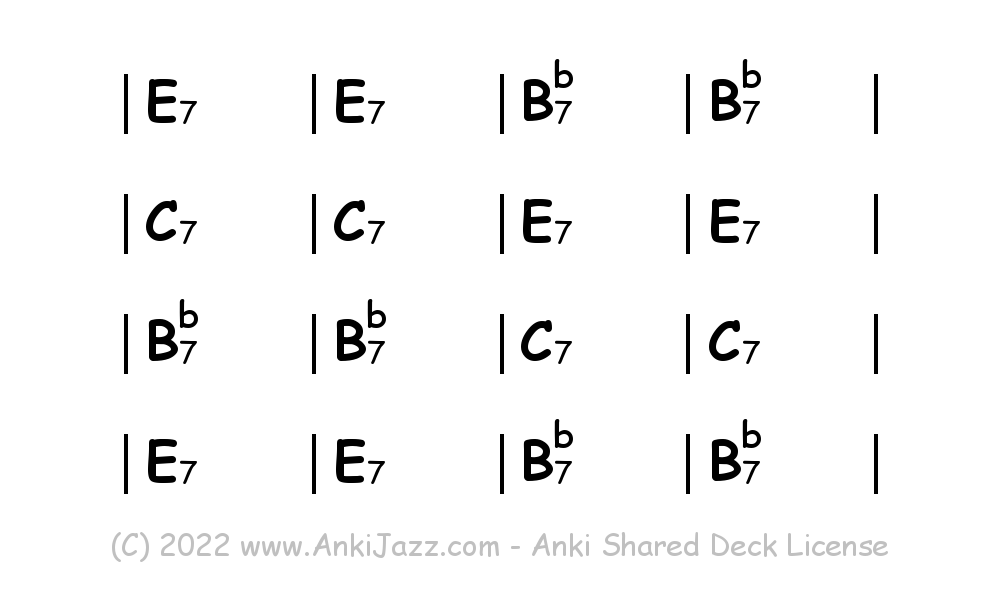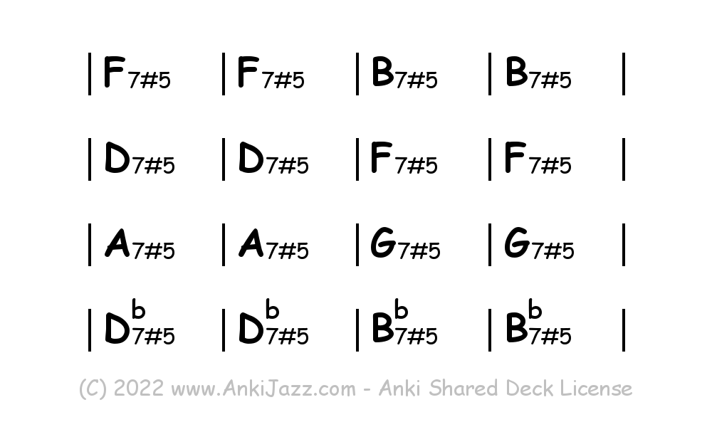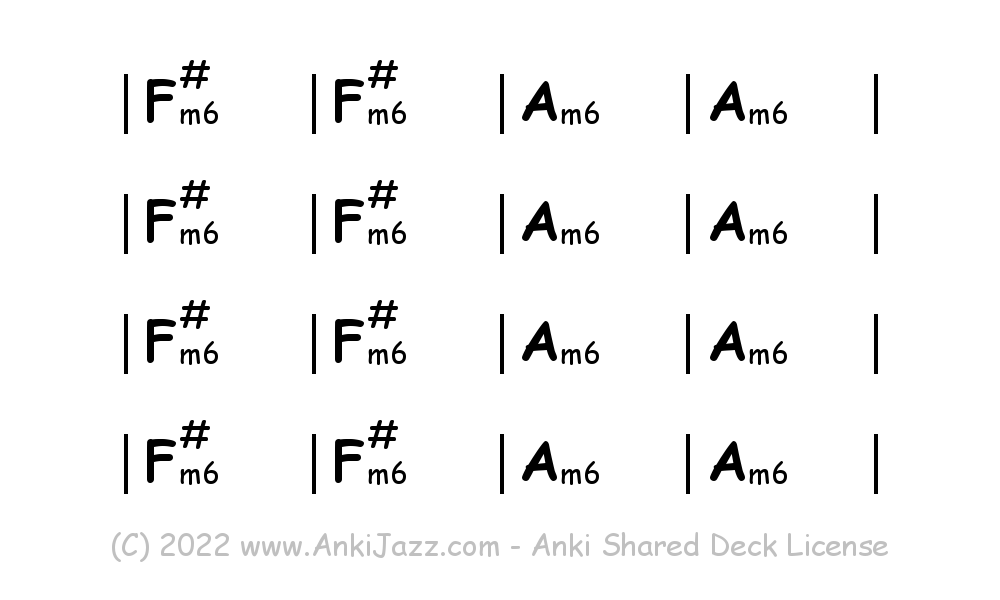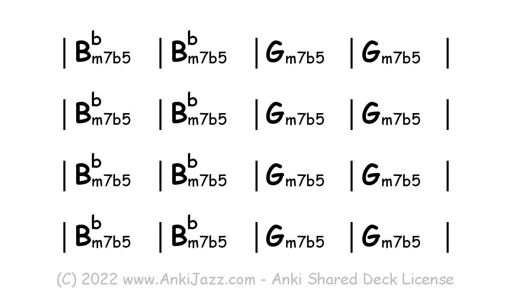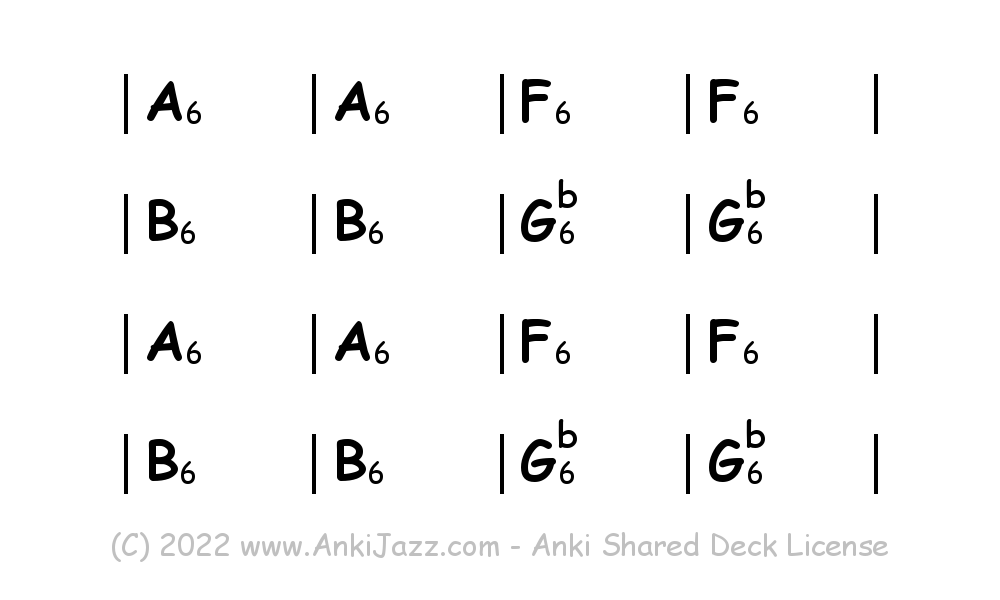 This deck contains chords and chord progressions commonly used in Jazz and other music styles. See full documentation on AnkiJazz.com.