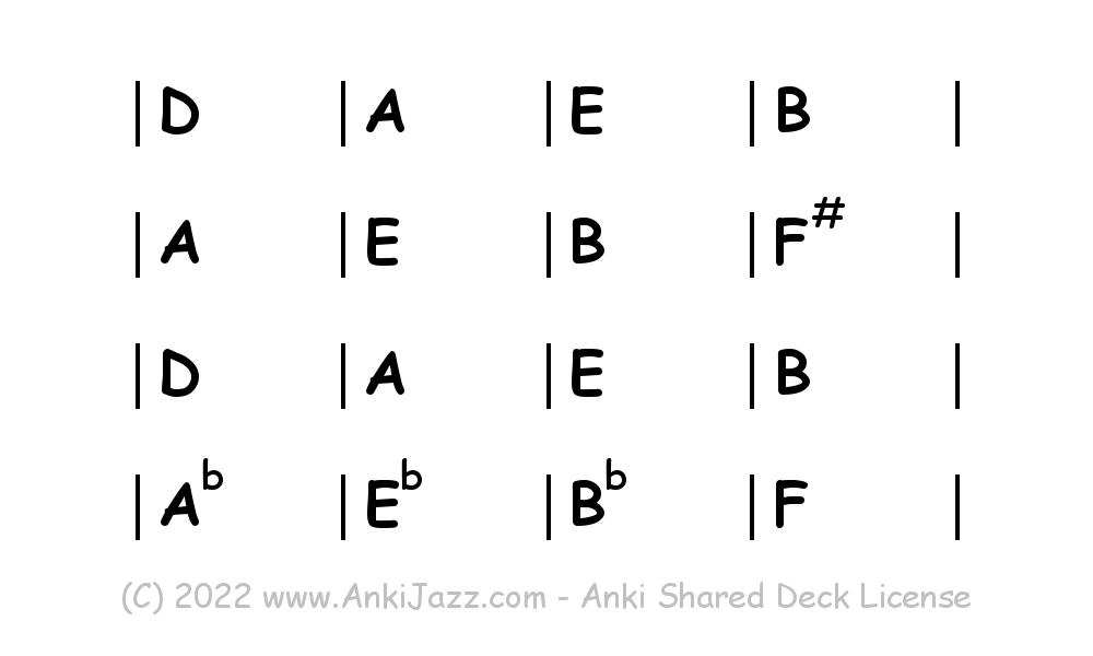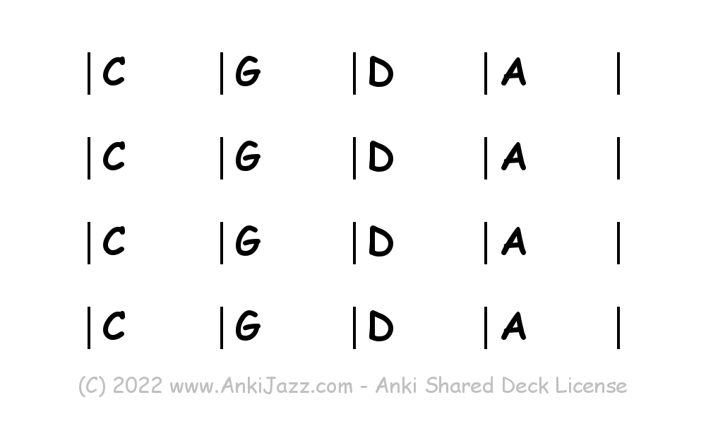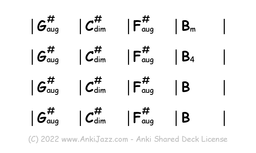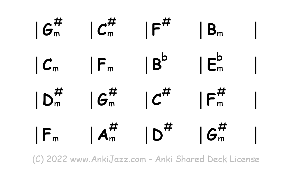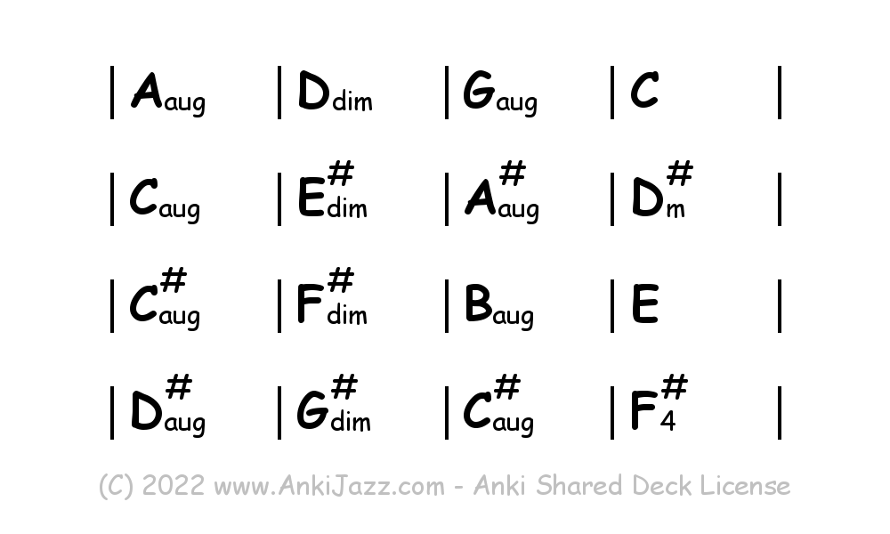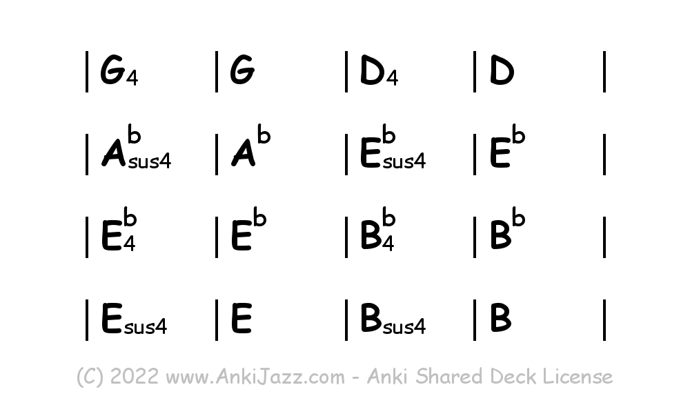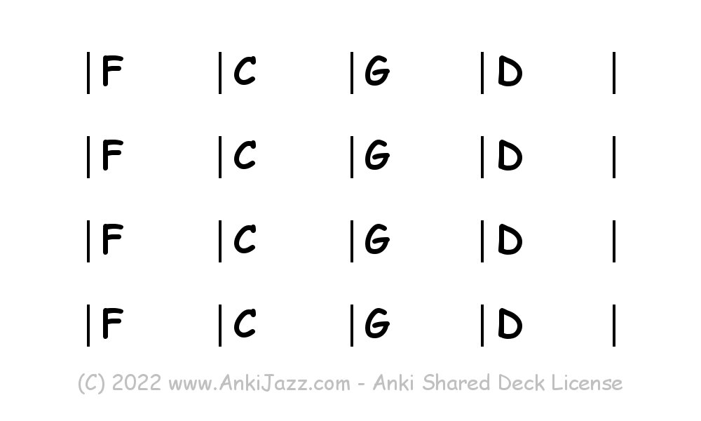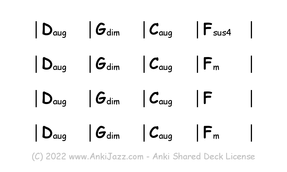 This deck contains chords and chord progressions commonly used in Jazz and other music styles. See full documentation on AnkiJazz.com.