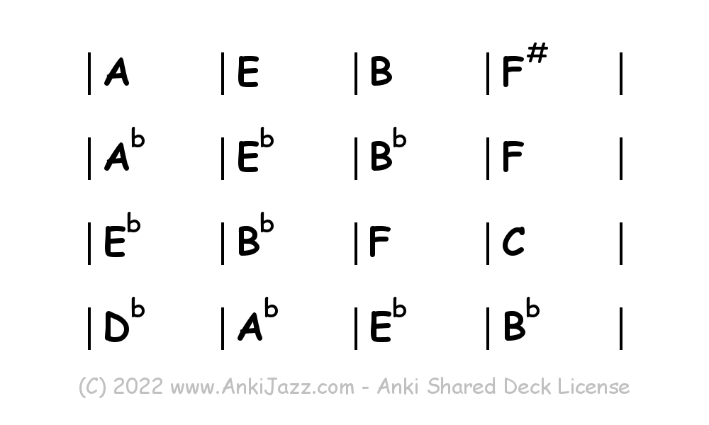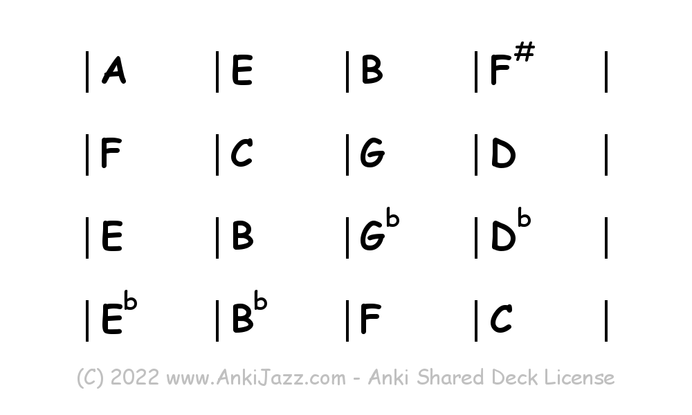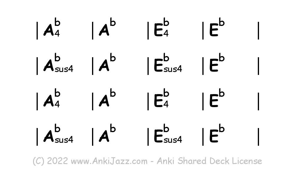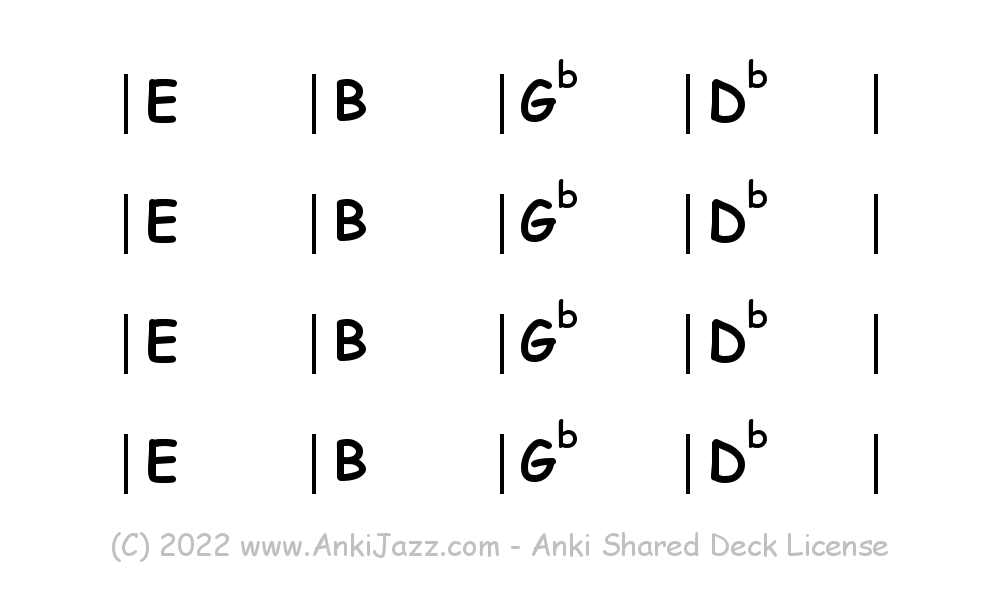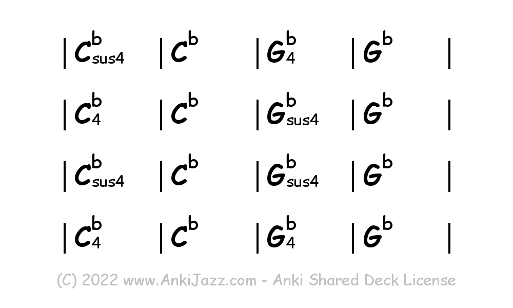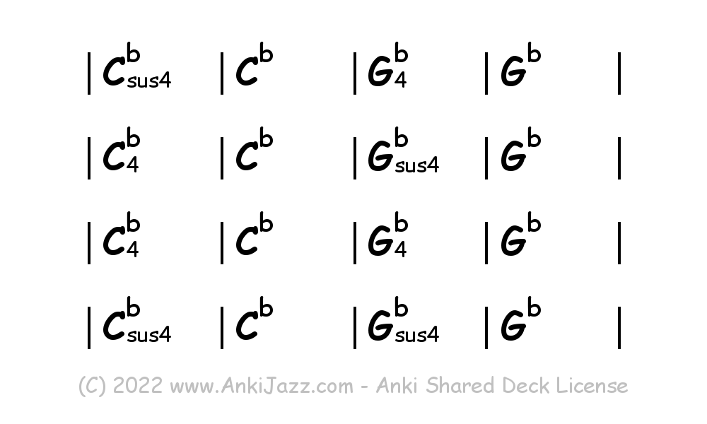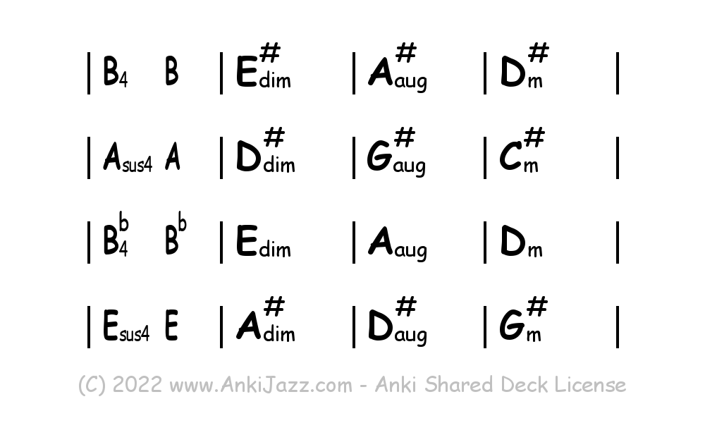 This deck contains chords and chord progressions commonly used in Jazz and other music styles. See full documentation on AnkiJazz.com.